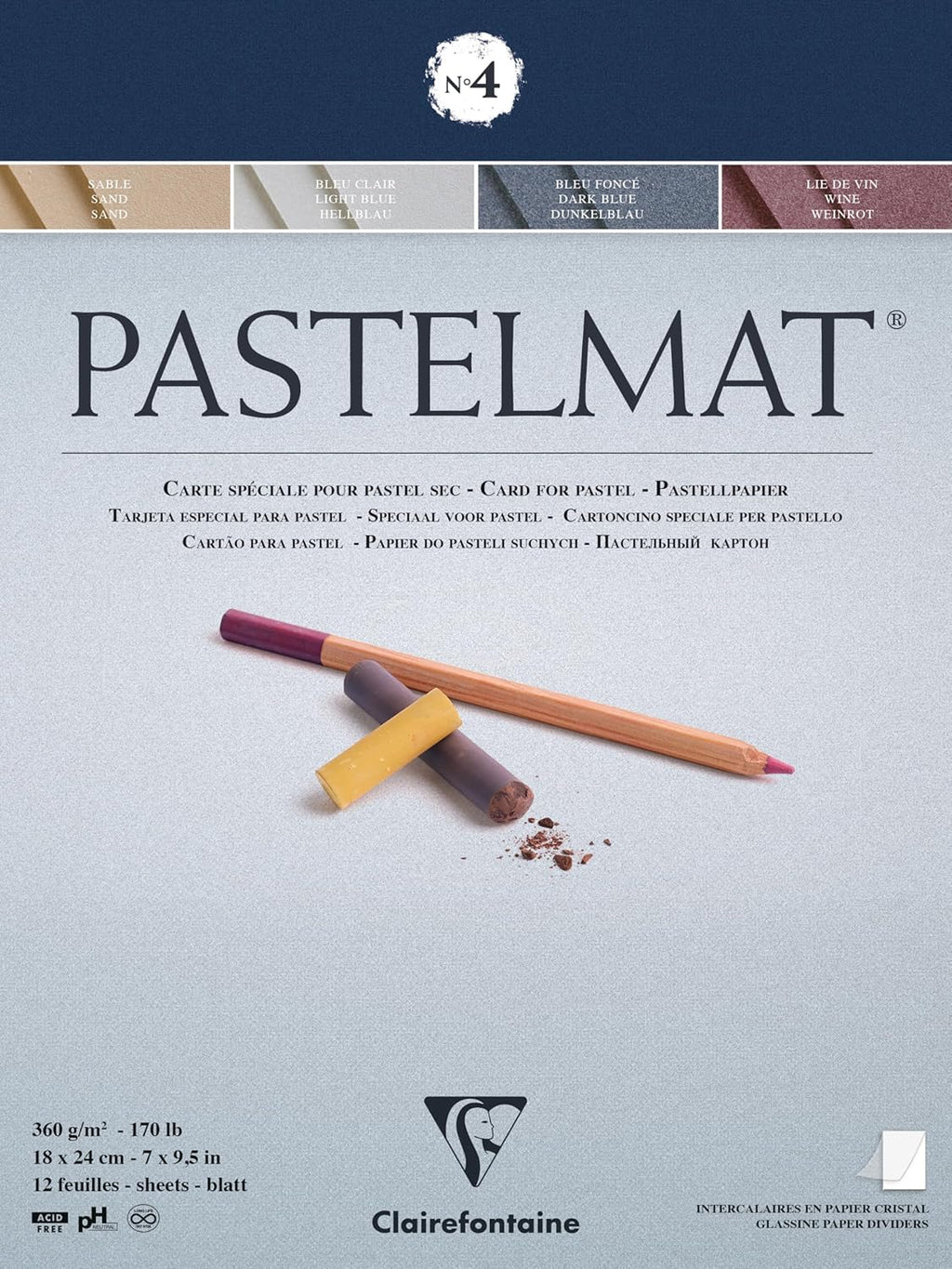 Discover why Clairefontaine Pastelmat is the preferred surface for pastellists worldwide. This premium 360gsm card features a unique velvety surface, made from a fine coating of cellulose fibres. It has the remarkable ability to grab and hold multiple layers of even the softest pastels without needing heavy fixative, allowing your colours to remain pure and vibrant.