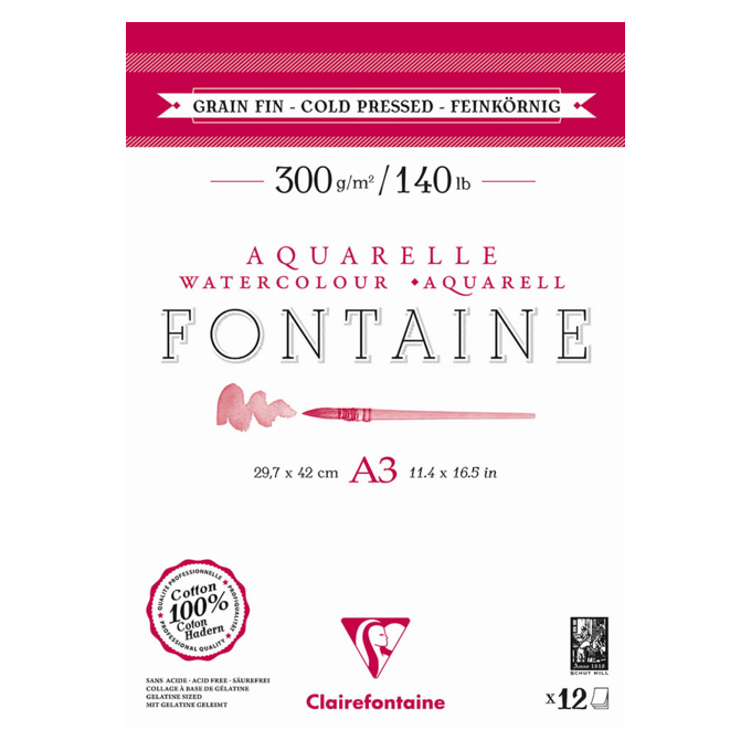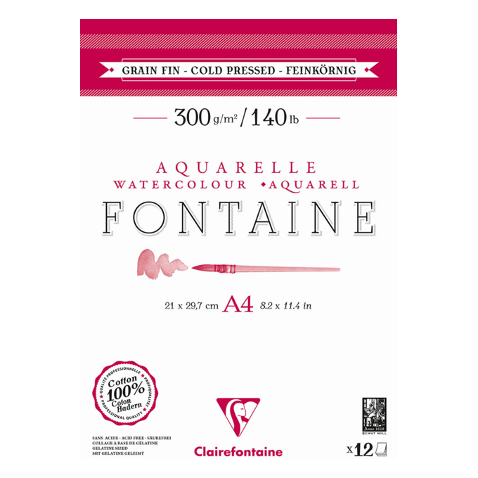 Manufactured in the pure tradition of Dutch art papers, Fontaine Original White is a professional-grade watercolour paper designed for stability and brilliance. Its 100% cotton composition and acid-free, natural white surface guarantee your artwork will stand the test of time without yellowing. Each pad contains 12 sheets of heavyweight 300gsm paper.