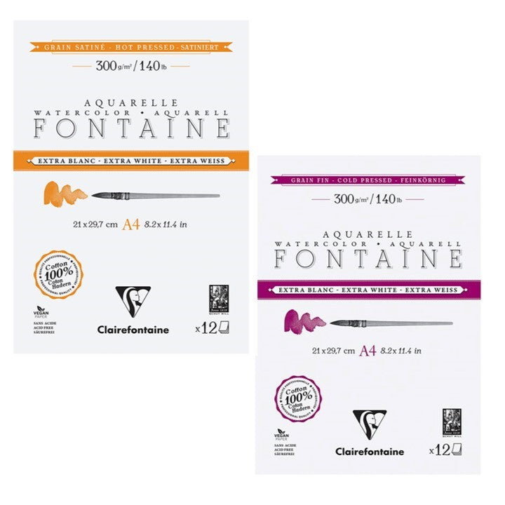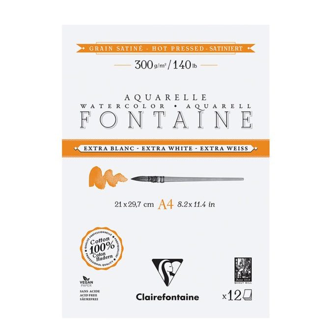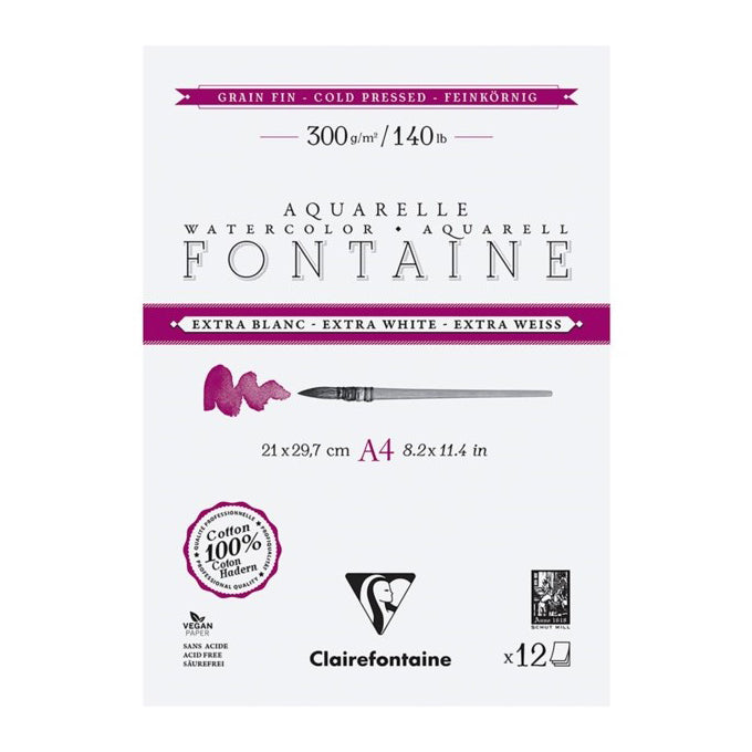 Crafted in the pure tradition of Dutch art papers, Fontaine is a professional-grade watercolour paper designed to make your colours shine. Its 100% cotton composition provides exceptional strength and stability, while the unique extra-white shade enhances the luminosity and brightness of your pigments. Each pad contains 12 sheets of 300gsm paper.