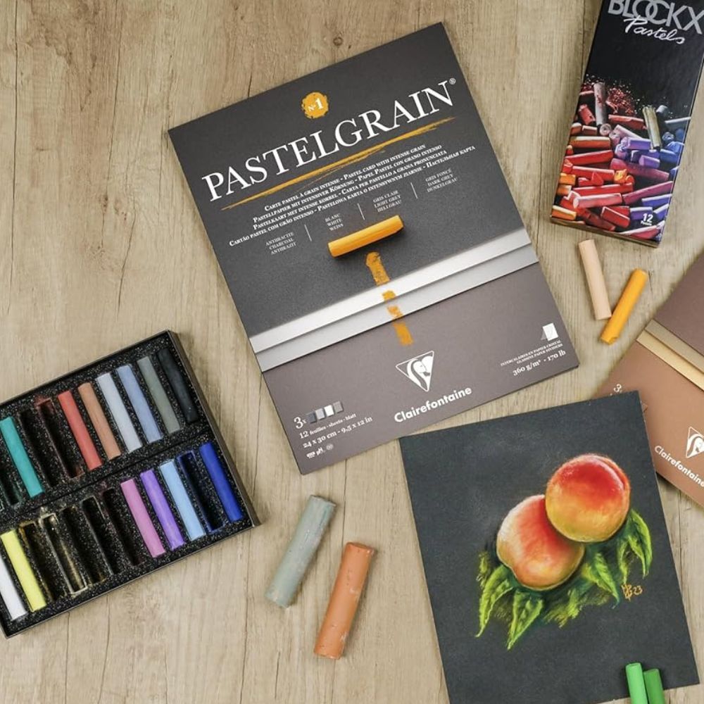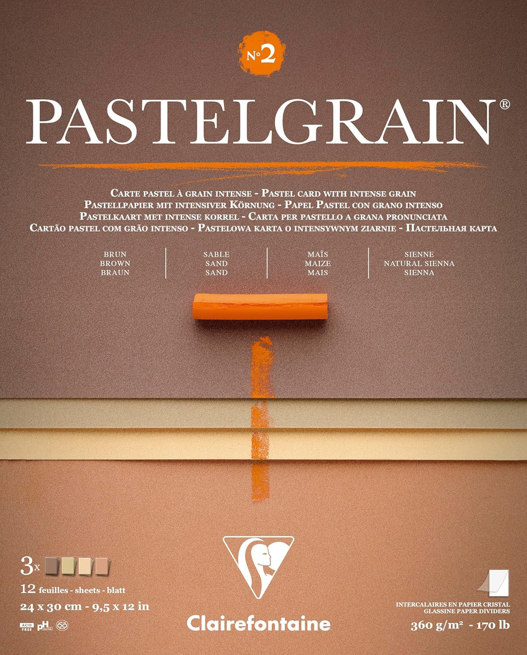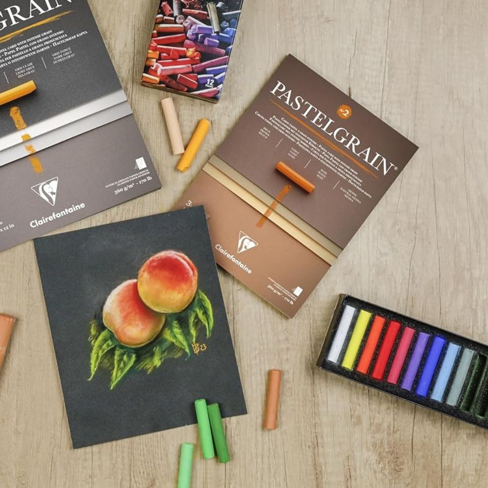 For artists seeking to create expressive, textural effects, Clairefontaine Pastelgrain is the ultimate surface. Its distinct, rougher grain allows more pigment to accumulate, bringing incredible depth and character to your work. Each pad contains 12 sheets protected by glassine interleaving.