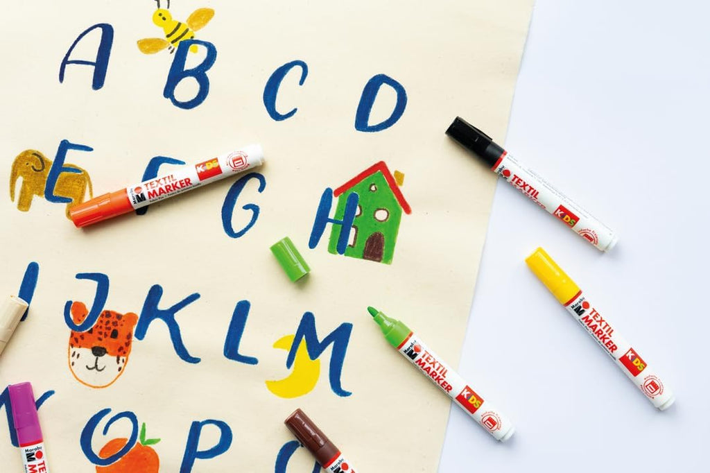 • 5 x Marabu KiDS Textile Markers (Yellow, Red, Blue, Green, Black)