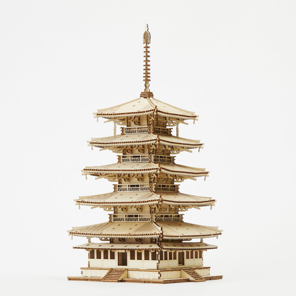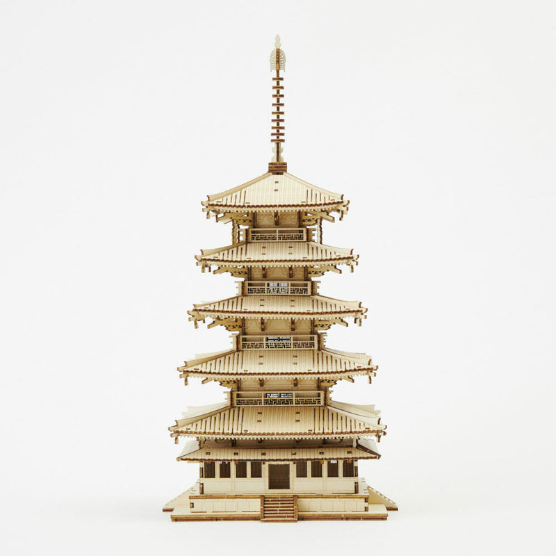 Ki-Gu-Mi Five Story Pagoda 3D Wooden Puzzle DIY Model Building Kit
