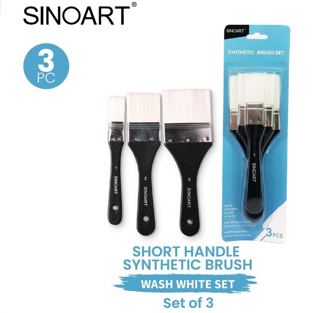 - Sinoart White Taklon Flat Wash Paint Brush Set - 3 Sizes