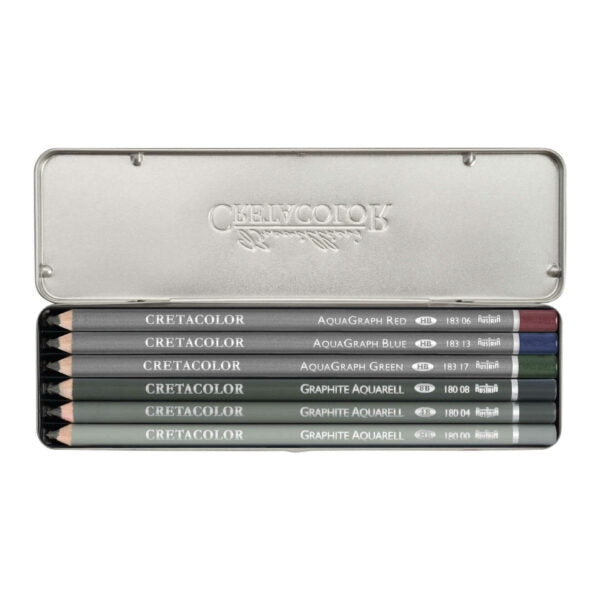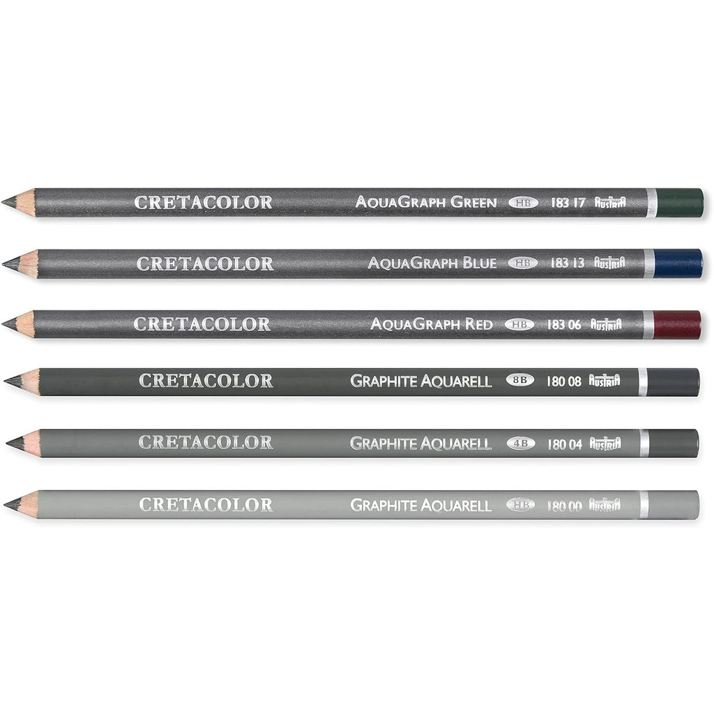 Experience the best of both worlds with the Cretacolor Watercolor Graphite Pocket Set. This versatile 6-piece collection is expertly curated to combine the rich, expressive power of classic graphite with a vibrant splash of color. It's the perfect all-in-one solution for creating nuanced drawings, adding powerful watercolor accents, and exploring mixed media techniques.