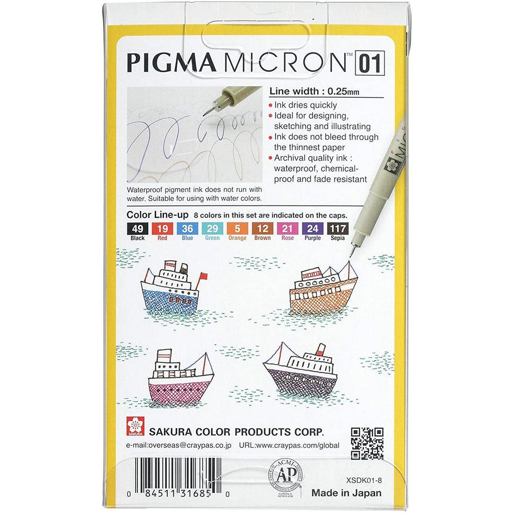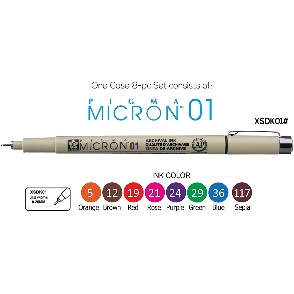 Sakura Pigma Micron Illustration Drawing Pens 01 Set 8pk