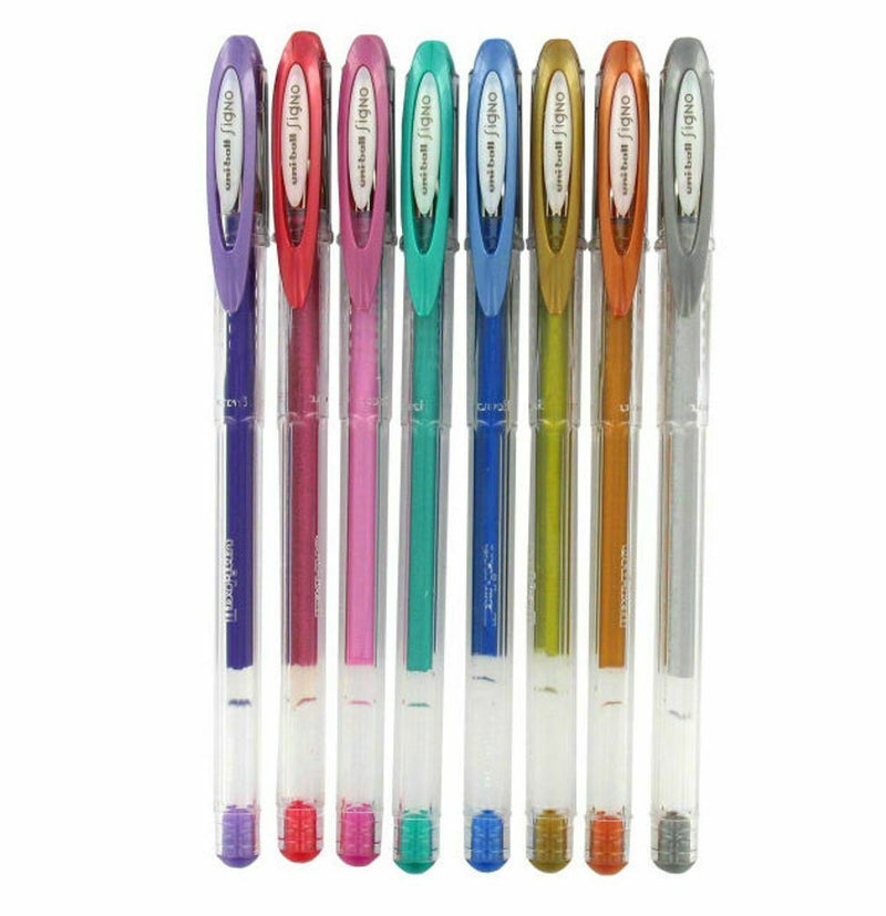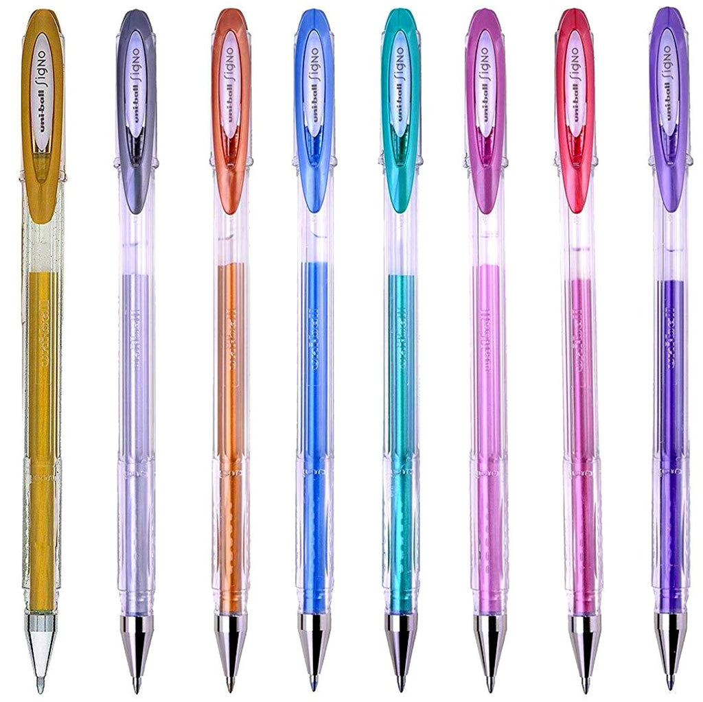 Shimmering, smooth, and vivid— the Uni-Ball Signo Noble Metallic Gel Pens 8-pack brings a touch of elegance to your writing. Featuring rich metallic hues, these pens are perfect for journals, planners, and creative projects.