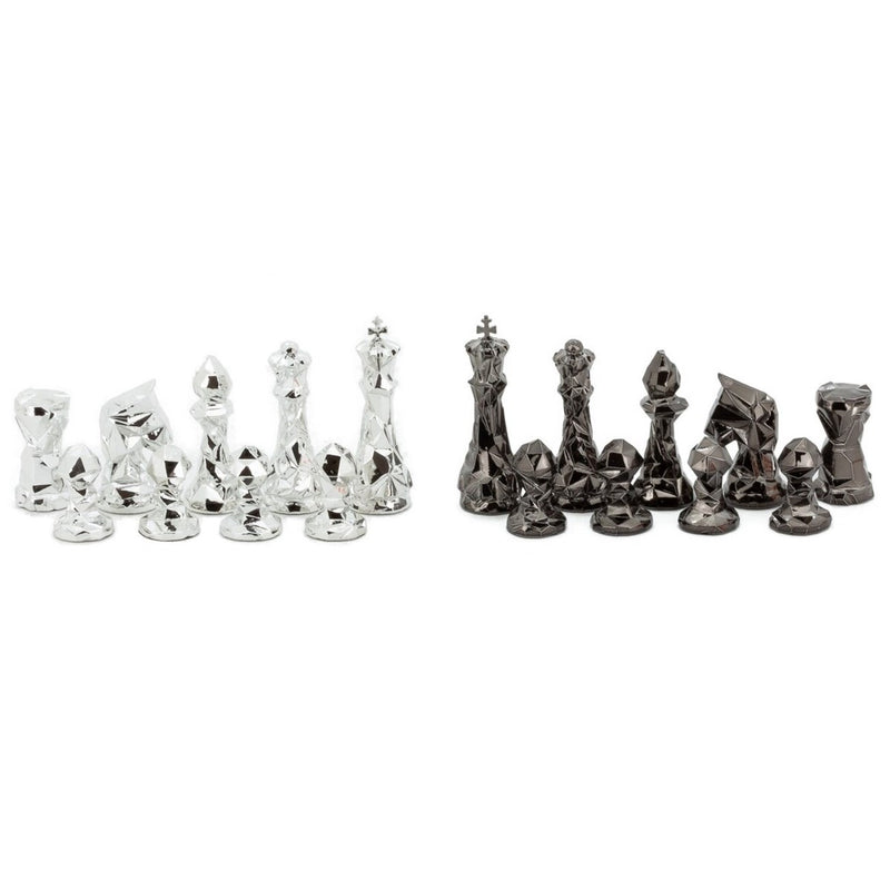 • Diamond cut Silver & Titanium 85mm chess pieces