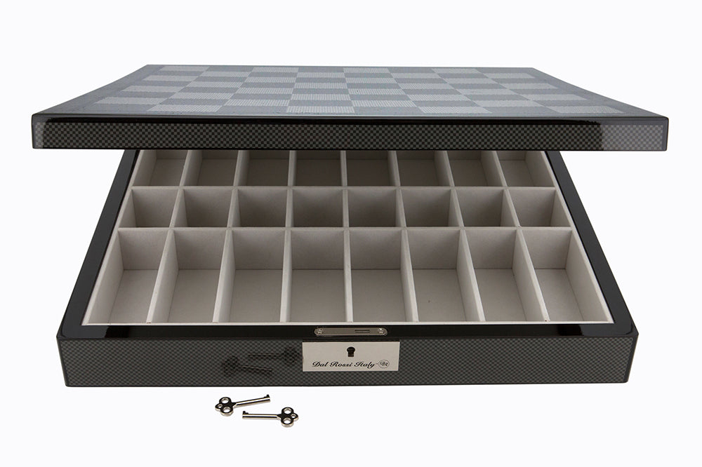 • Package contents: 20inch carbon fibre shiny finish board + 16 Dark silver & 16 Dark titanium chess pieces