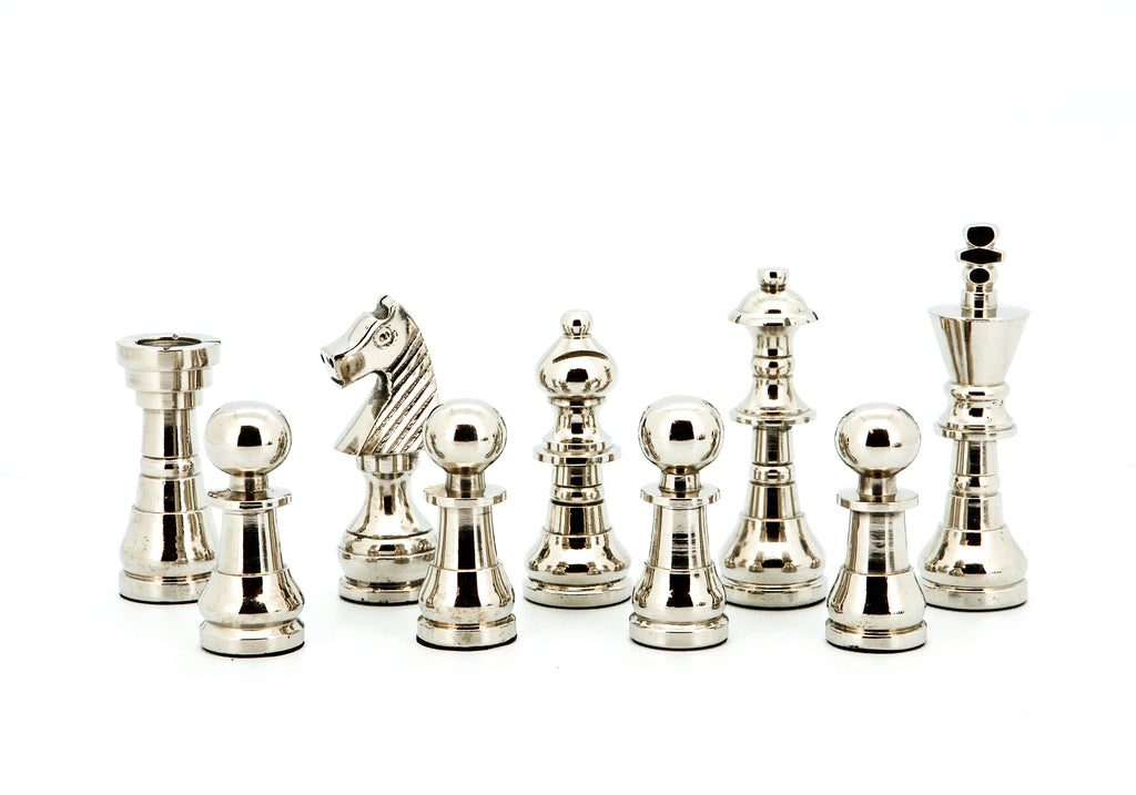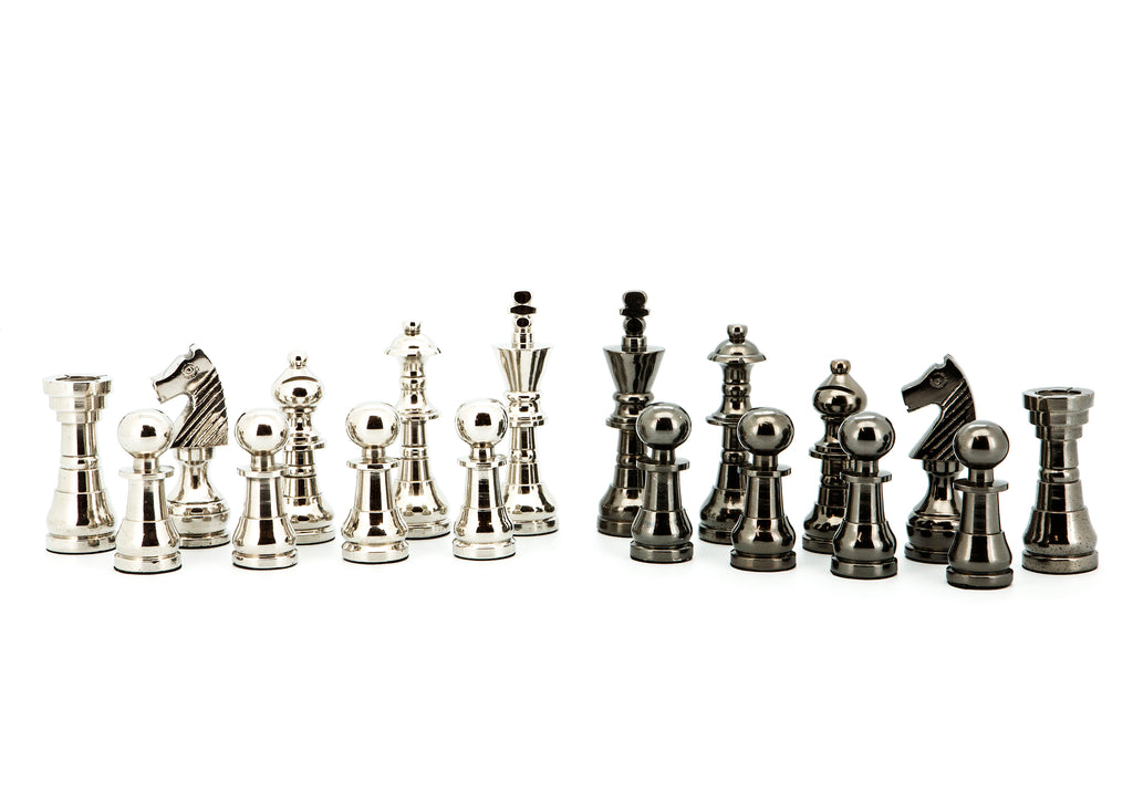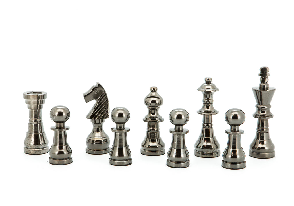 • High-Quality Chessmen: Metal pieces with dark titanium and silver finish, each 115mm in size.