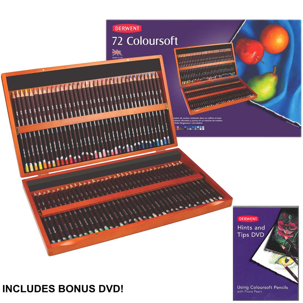 - Derwent Coloursoft 72 Colouring Pencils Wooden Box Set includes Bonus DVD