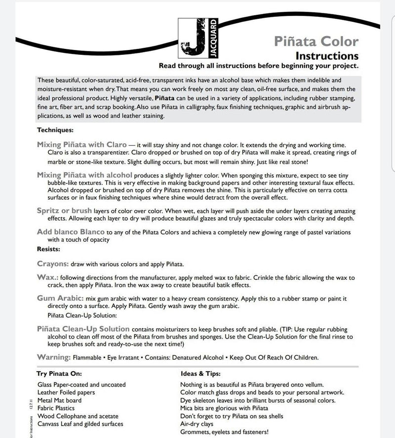 • Pinata Alcohol Transparent ink bottles can be used on many surfaces such as wood, glass, leather, clay, paper, yupo paper + more!!