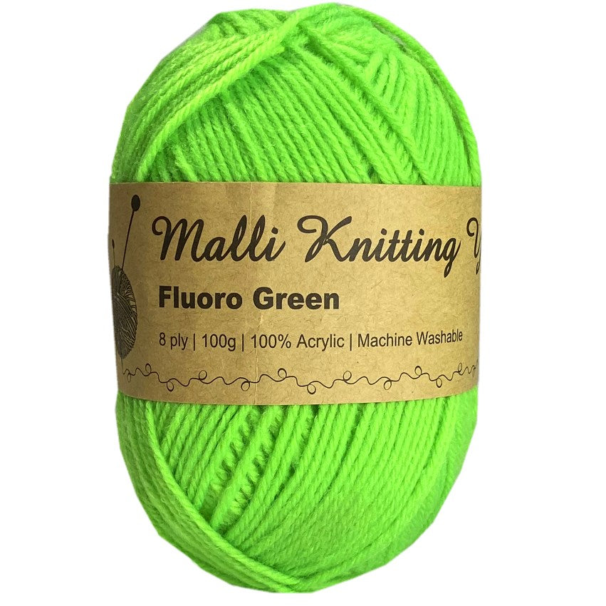Malli Knitting 100g Acrylic Yarn - Fluoro Green